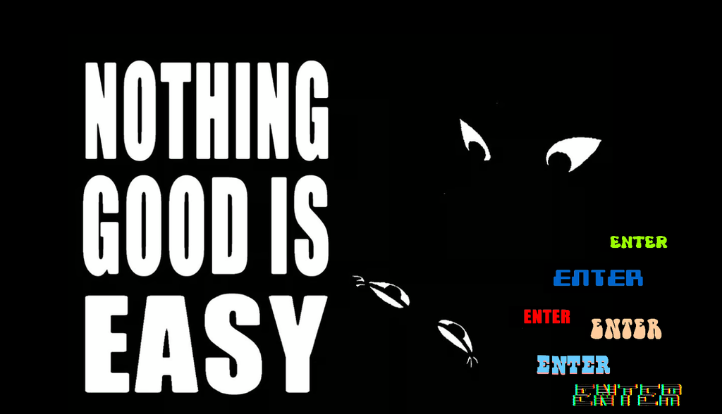 On the homepage, the artist puts together a typography hero, animated creepy eyes, and glitching Enter buttons. The consistent neon-themed design with a black background also helps in setting the edgy tone for the website.